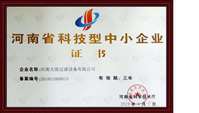 2020年9月9日——河南大張過濾設備有限公司榮獲“高新技術企業(yè)”證書